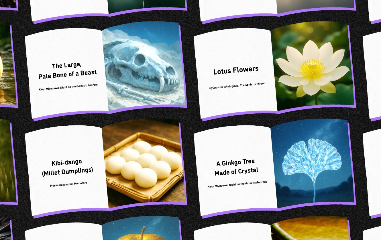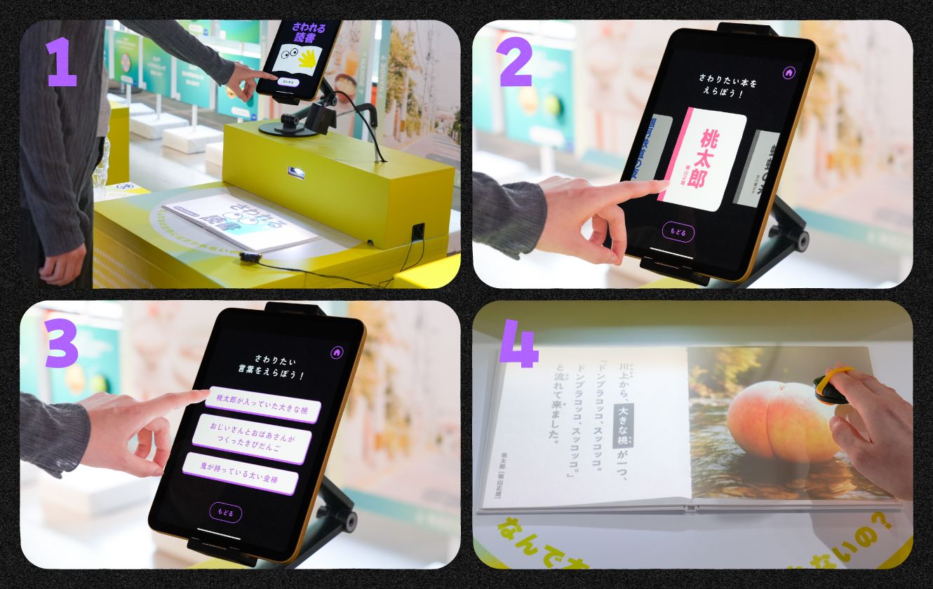 Readers can feel the textures of objects from stories—such as the giant peach from Momotaro, or the crystal-like ginkgo tree from Night on the Galactic Railroad—through their fingertips.