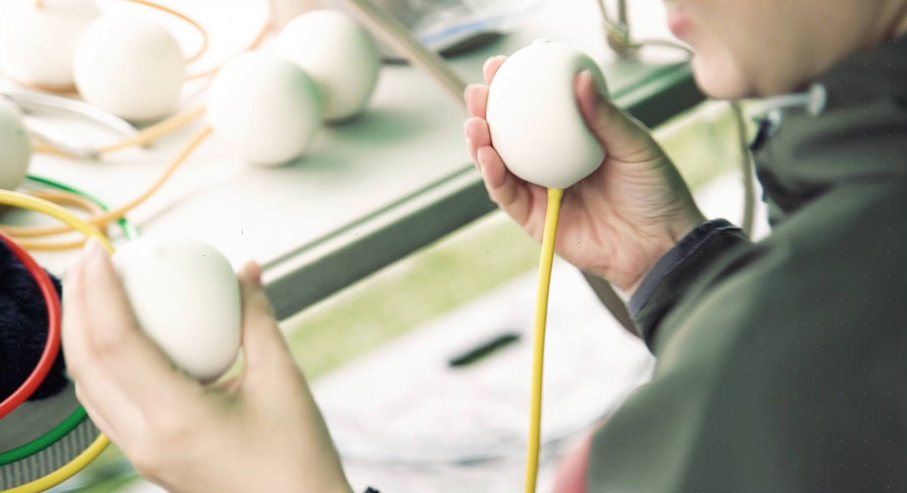 The real pleasure of spectator sports comesin sharing the excitement of a match with someone else. However, in blind soccer, considering the negative impact it would have on the athletes on the field, it’s not possible to raise your voice to cheer while watching the match. A WOW BALL is a device that lets you share the excitement of cheering on your team together using only the movement of air, without the need to make noise. Using a simple mechanism of multiple rubber balls connected with a tube, in which squeezing one ball causes the other balls to expand proportionately, spectators can instinctively share their excitement with each other.