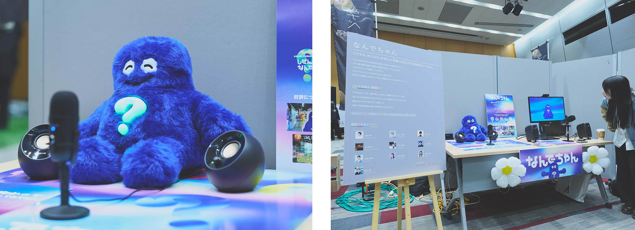たとえば「なんでちゃん」は、私たちの好奇心や想像力を広げてくれる、AIによる対話型のぬいぐるみロボットです。問いに対してただ答えをくれる存在ではなく、ヒントを出したり、似たような例示をしたり。会話を通じて思考を深めることができるため、子どもはもちろん、大人にも刺激を与えてくれます。イベント等でのキャラクター活用の他、教育系商品・サービスの開発にも展開を想定しています。